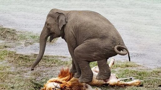 Экстремальные бои льва и слона. Как слон спас своего малыша