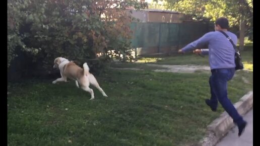 Бурная реакция на собак:один из способов как отучить реагировать на собак(Алабай Ермак)