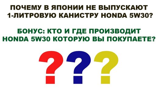 ПОЧЕМУ В ЯПОНИИ НЕ ВЫПУСКАЮТ 1-ЛИТРОВУЮ КАНИСТРУ HONDA 5W30? (БОНУС: КТО И ГДЕ ДЕЛАЕТ МАСЛА HONDA)