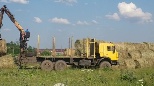 Привезли сено с поля. Складывали манипулятором в три ряда под открытом небом.