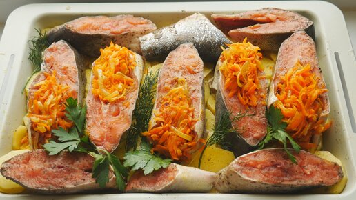 Взяла немного рыбы,овощей и все залила интересным соусом. Получилось праздничное блюдо. Делюсь рецептом.