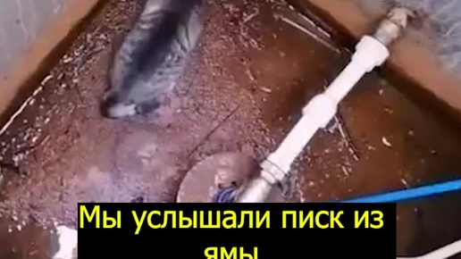 Котёнок провалился в яму, мы вытащили его оттуда и накормили