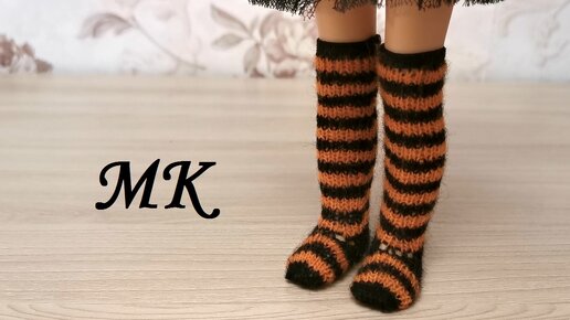 Полосатые чулки спицами для куклы Паола Рейна, мастер-класс