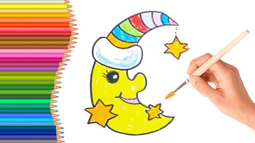 Как нарисовать месяц и звезду - урок рисования для детей