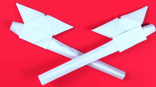 Как сделать топор из бумаги А4 своими руками. Оригами топорик алебарда. Оружие из бумаги