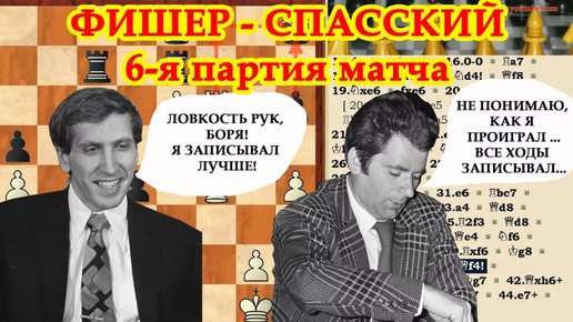 Бобби Фишер как белый ураган пронесся по доске и уверенно разгромил Спасского в их 6-й партии знаменитого матча за 👑 1972 года