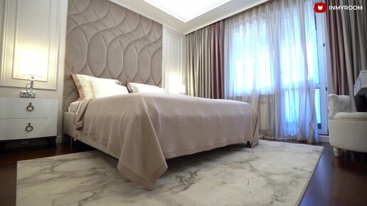 Просто мечта! Спальня 15 кв.м с большой кроватью и роскошным мягким изголовьем до потолка