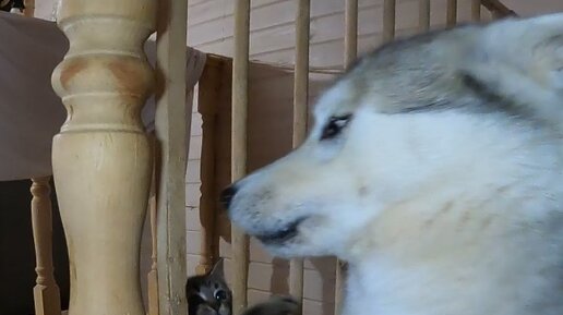 Котенок Кузьмич вызывает вожака хаски Зохана на поединок через стенку.