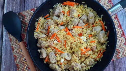 Полноценное Второе Блюдо - Рассыпчатый Булгур с Мясом, Приготовленный на Сковороде.