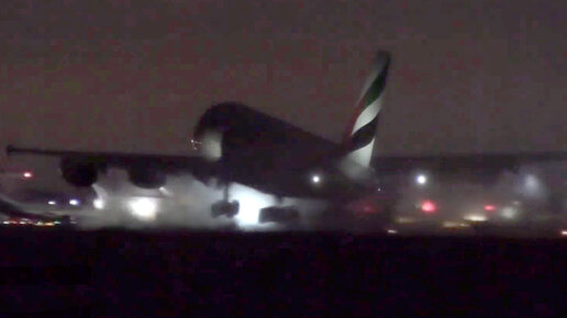 Airbus A380 с очень коротким разбегом. Ночь - Домодедово