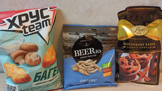Проверяем 2 вида закусок к пенному напитку и шоколадные капли.