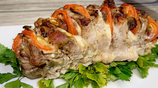 Оригинальный рецепт из свинины в духовке. Мясная книжка из свинины с сыром, грибами и помидорами в духовке