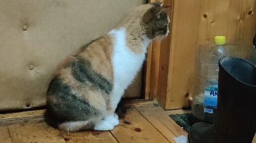 Кошка поймала мышь в доме и вынесла ее на улицу