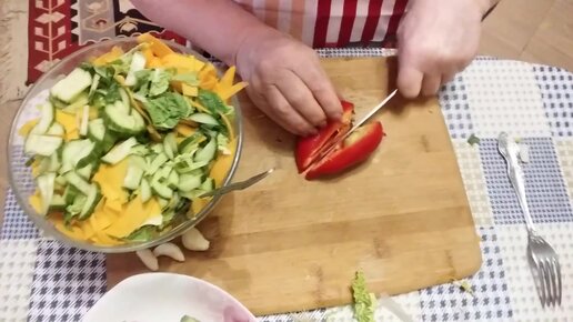 Салат из пекинской капусты, тыквы, перца и свежего огурца (низкоуглеводный)