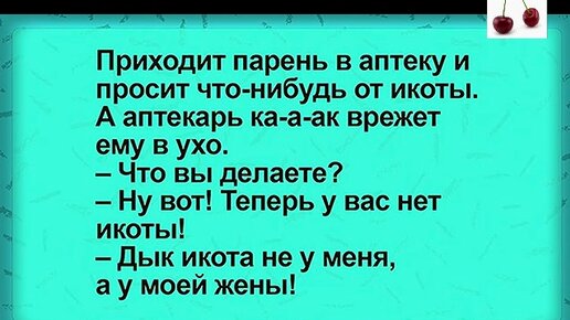 Приходит парень в аптеку и просит что-нибудь от икоты... Анекдот