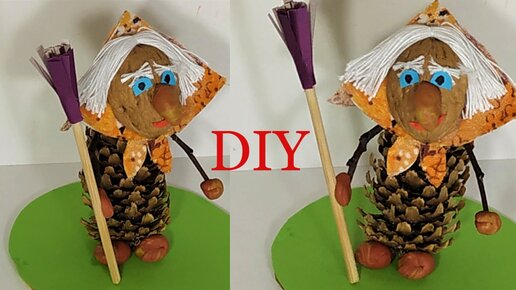 Как сделать Бабу Ягу из шишек.