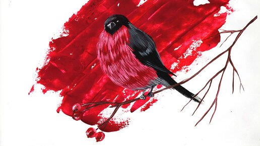 Рисуем интерьерную картину, снегиря. Как нарисовать снегиря на ветке. Рисуем снегиря легко.