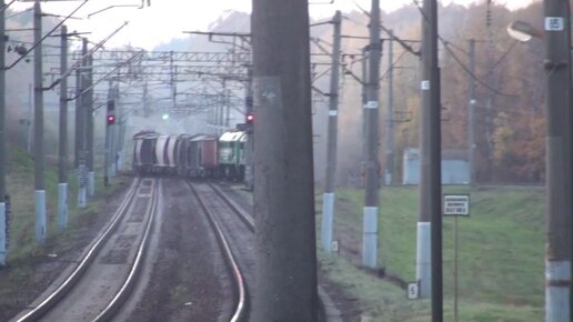 Ожидание грузового поезда - съехал на обход и дал копоти