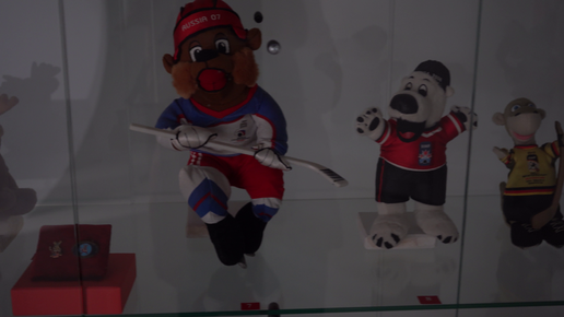 Талисманы чемпионатов мира по хоккею в Музее хоккея на улице Автозаводской в Москве
