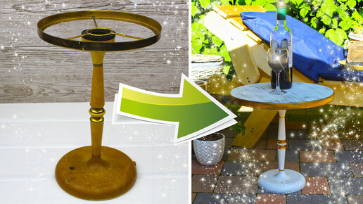 Нашла на чердаке старый светильник и сделала из него журнальный столик или столик для шезлонга! Делюсь процессом!