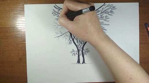 Рисунок, фантастическое дерево. Сова.