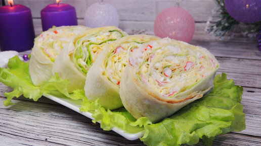 Новогоднее меню. Очень вкусная закуска из лаваша. Крабовый салат в лаваше