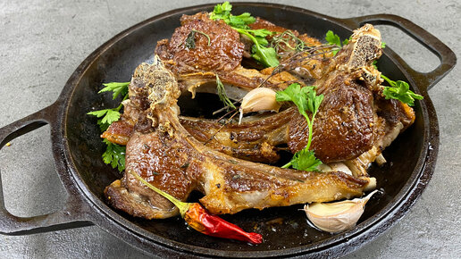 Сочные бараньи рёбрышки на сковороде с чесноком