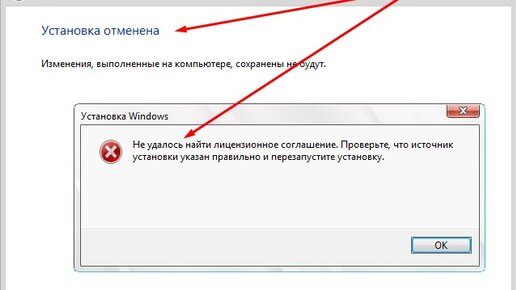 Не удалось найти лицензионное соглашение - Ошибка при установке Виндовс