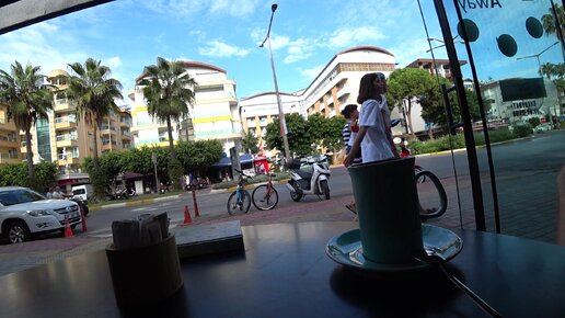 Вид из кафе Chez Luna. Алания. Мимо проходят люди