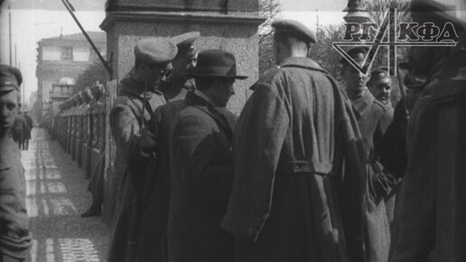 Проверка пропусков у Смольного. Толпа на Дворцовой площади (немая кинохроника, 1917 г.)