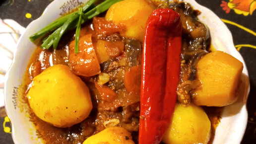 Думляма, приготовленная в казане на огне. Блюдо Узбекской кухни