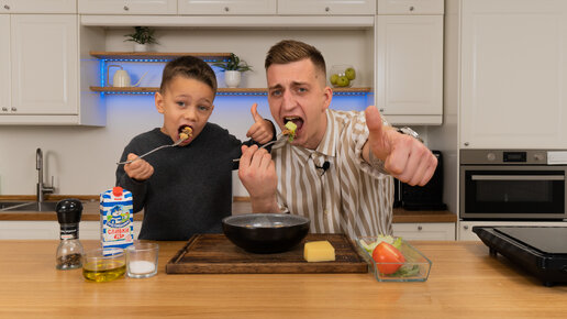 Готовят мужчина и ребёнок: мясной салат, который не оставит равнодушным семью