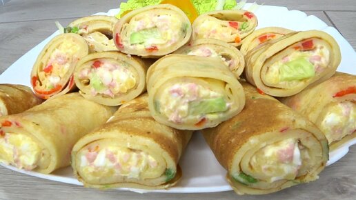 Новогодняя закуска рулетики из блинов с начинкой!