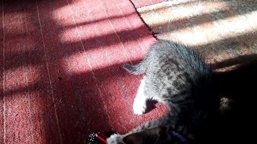 Погода порадовала осенними лучами солнца, котёнок играет... Радуется солнышку...