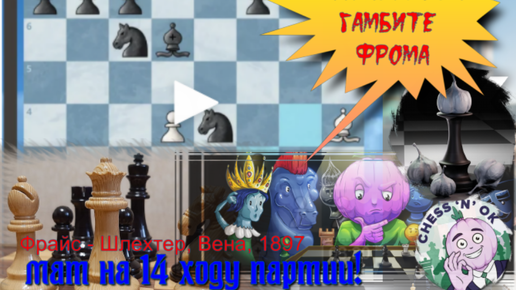 Катастрофа в гамбите Фрома дебюта Берда: красивый мат пешкой в самом центре доски от Шлехтера, игравшего черными (Вена, 1897)