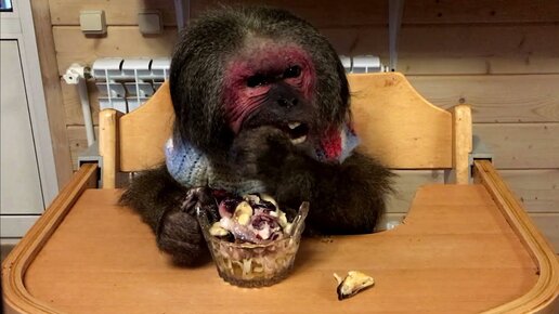 Обезьянка Мотя пробует морской коктейль. (Домашние макаки)