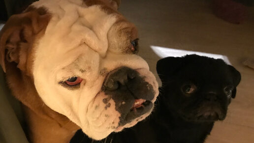 Бульдог, да не дог. Англичане, они степенные, важные, терпеливые и малоподвижные. Но маленький мопсёнок тоже еще та оторва