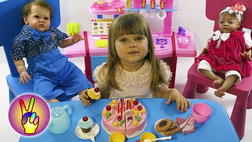 День рождения куклы реборн. Кормим Реборнов на детской кухне. Режем кукольный тортик.