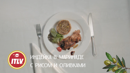 Индейка в маринаде с рисом и оливками
