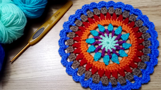 Круглая МАНДАЛА крючком. Вяжем яркую Салфетку из 8 рядов