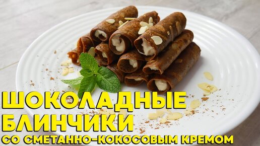 Шоколадные блинчики из овсяной муки с миндалем и сметанно-кокосовым кремом. Блинчики ПП рецепт