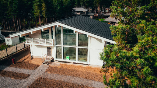 Фахверковый дом из клееного бруса в Охтинском парке 300 м.кв., аэросъемка