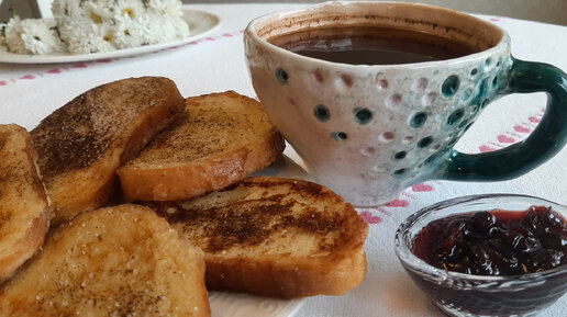 Забежала подружка, а в доме ничего нет к чаю. Вспомнила про мамины сладкие гренки из детства. 5 минут и готово