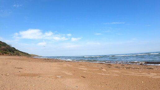 Кучугуры Азовское море, шум моря, крики чаек, пустынный пляж.