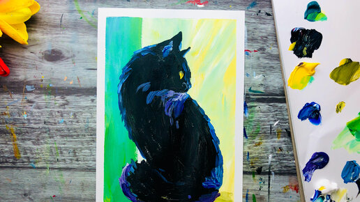 КАК НАРИСОВАТЬ ЧЕРНУЮ КОШКУ КРАСКАМИ | НЕ СЛОЖНЫЙ УРОК РИСОВАНИЯ ДЛЯ НАЧИНАЮЩИХ
