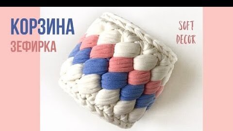 Корзина из трикотажной пряжи узором "ЗЕФИРКА" | Пышные столбики крючком | Soft Decor