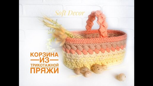 Овальная корзинка из трикотажной пряжи | Пасхальная корзинка крючком