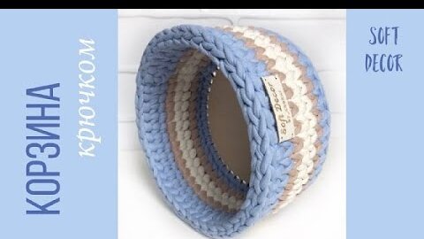 Корзина из трикотажной пряжи с деревянным дном | Круглая корзина крючком