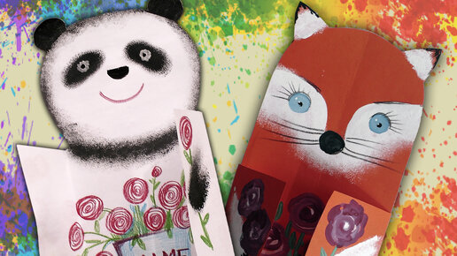 Как сделать открытку в виде лисички или панды. Отличный подарок от ребенка на любой праздник.