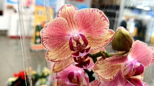 Свежие орхидеи мультифлоры и Пираты Пикоти на витрине Ашан г. Омск.